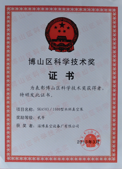 公司產(chǎn)品獲博山區(qū)科學(xué)技術(shù)獎(jiǎng)