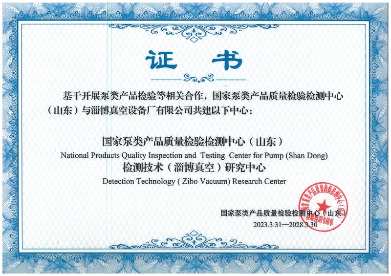 公司被國家泵業(yè)產(chǎn)品質(zhì)量檢驗檢測中心授權(quán)為:國家泵類產(chǎn)品業(yè)質(zhì)量檢驗檢測中心(山東)和檢測技術(shù)(淄博真空)研究中心