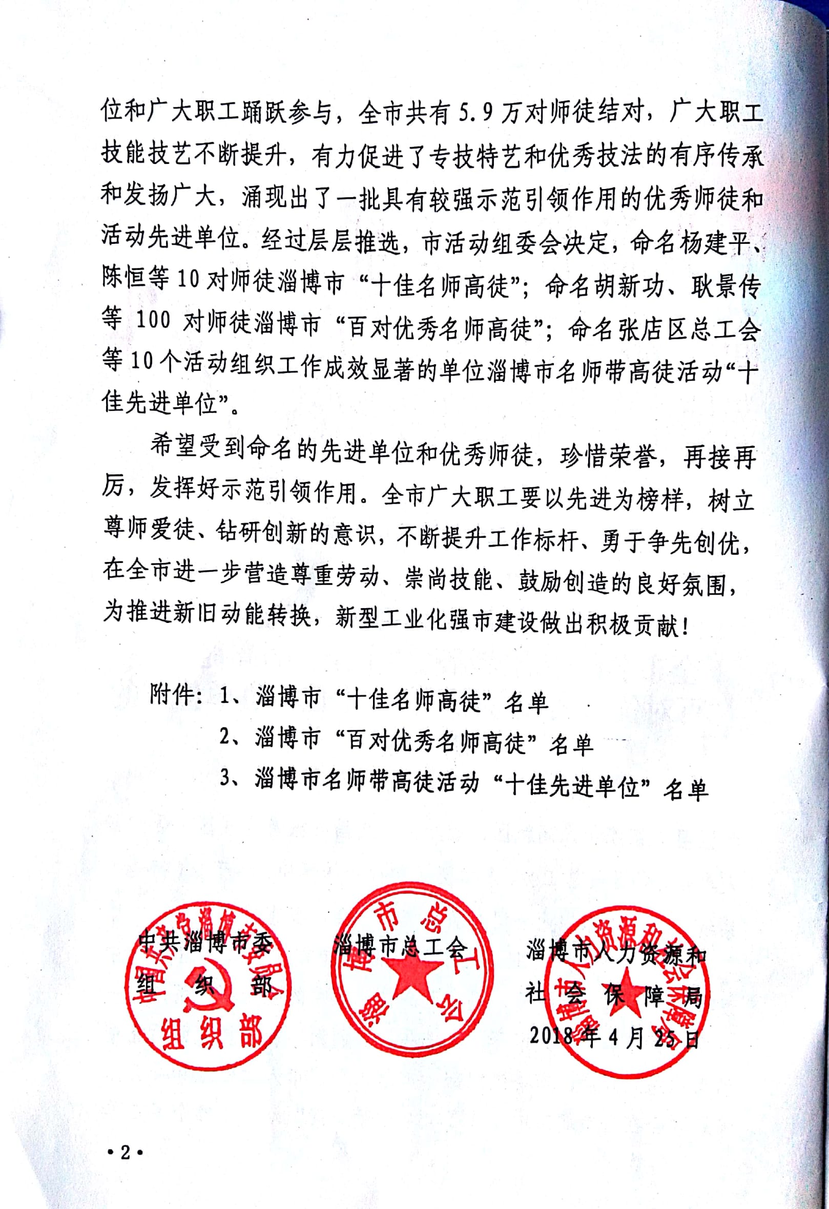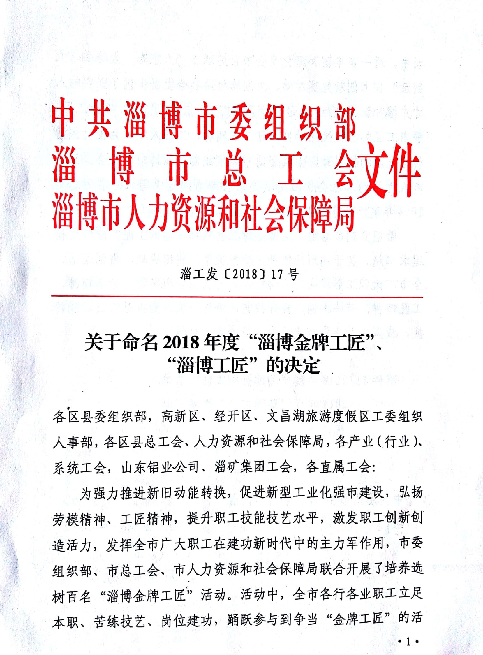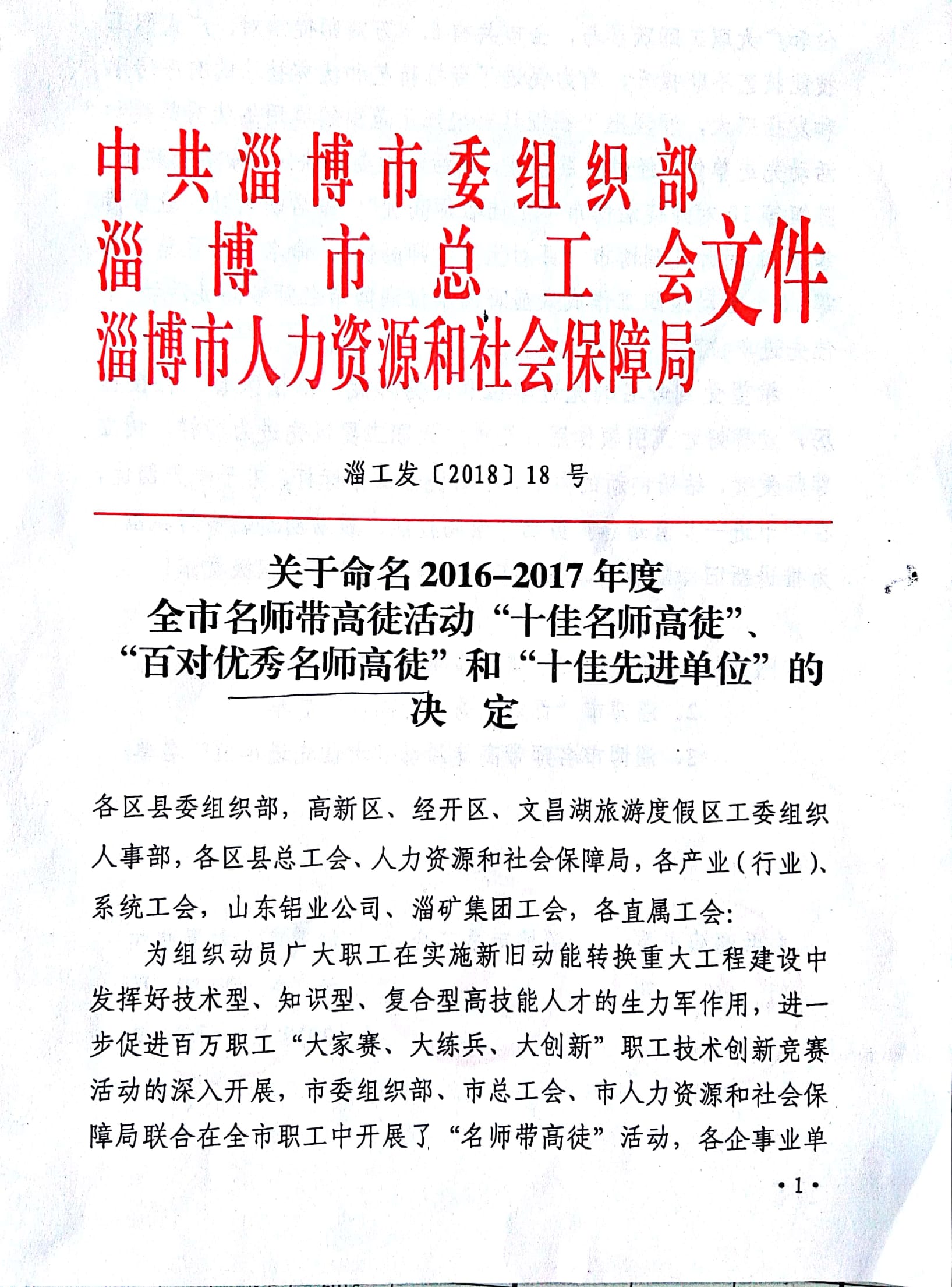 為了推進(jìn)我市新舊動能轉(zhuǎn)換,促進(jìn)新型工業(yè)化強(qiáng)市建設(shè),弘揚(yáng)勞模精神、工匠精神,使百萬職工“大家賽、大練兵、大創(chuàng)新”技術(shù)創(chuàng)新競賽活動深入開展,發(fā)揮全市廣大職工在建功新時代中的主力軍作用,市委、市政府多個部門聯(lián)合在全市開展了“尋找身邊的淄博工匠”和“名師帶徒”活動。經(jīng)過層層推薦、網(wǎng)絡(luò)公示評選、組委會考核評定,我公司被命名為淄博市名師帶徒活動“十佳先進(jìn)單位”;員工劉立新被授予“淄博工匠”榮譽(yù)稱號;命名公司員工錢文革、劉龍根、王新艷、丁燁為“淄博市百對優(yōu)秀名師高徒”。