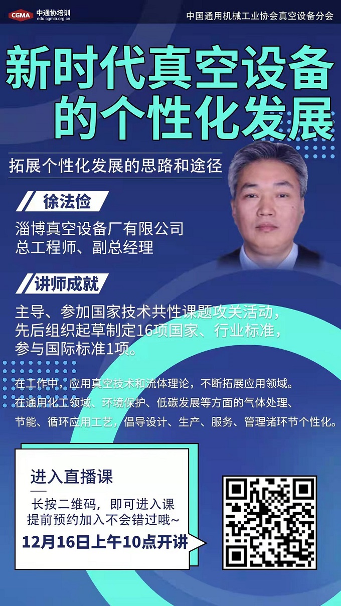 本次講座時(shí)間為:12月16日上午10點(diǎn)整,專題為《新時(shí)代真空設(shè)備的個(gè)性化發(fā)展》,歡迎大家提前完成注冊,準(zhǔn)時(shí)在線收聽,交流互動。